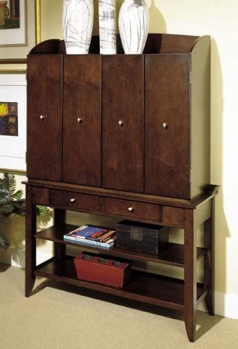 The Meridien Media Center Hutch features four bi-fold, wrap around doors which completely fold against the sides of the center. The back includes a slide-out back and a cord access hole at the base. Paired with the Multi-Media Sofa Table, (12) the Media Hutch makes a perfect entertainment center for bedrooms or dens.