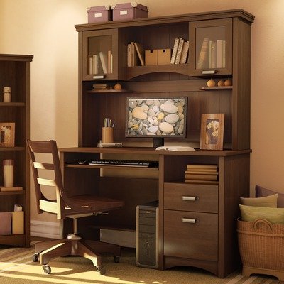 Home Office Computer Desk with Hutch in Sumptuous Cherry Finish Review